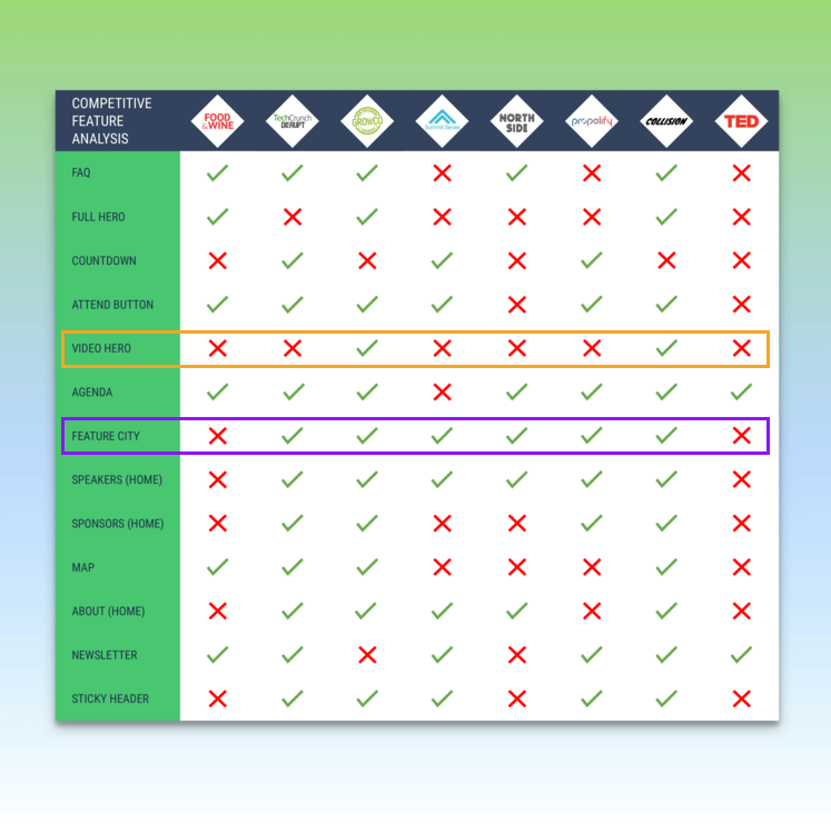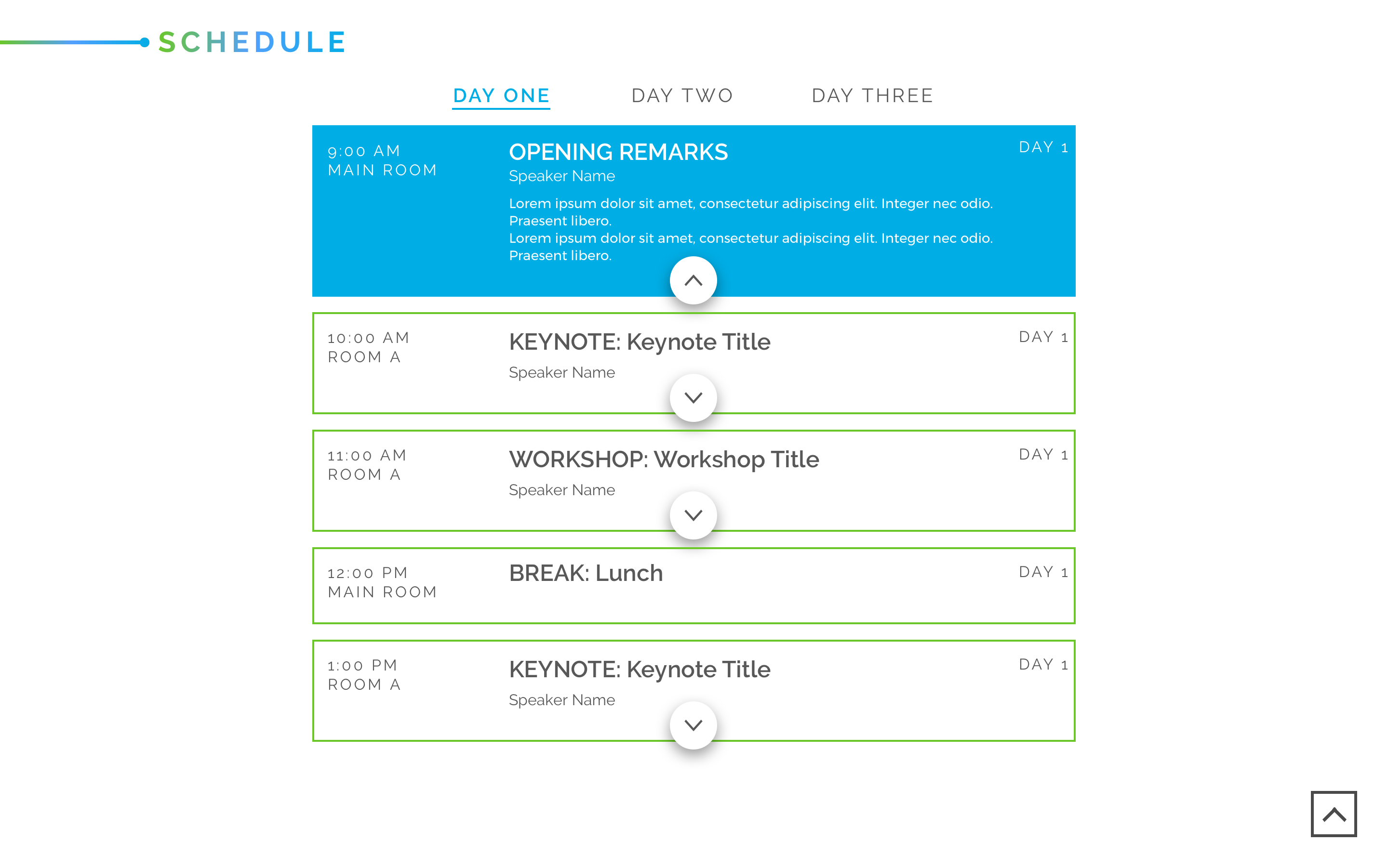 The other influential feature was possibly using a single page, infinite scroll. With 7 of the 8 conference sites following this trend, we felt more confident in the success of this feature but it never hurts to have numbers to back you up!