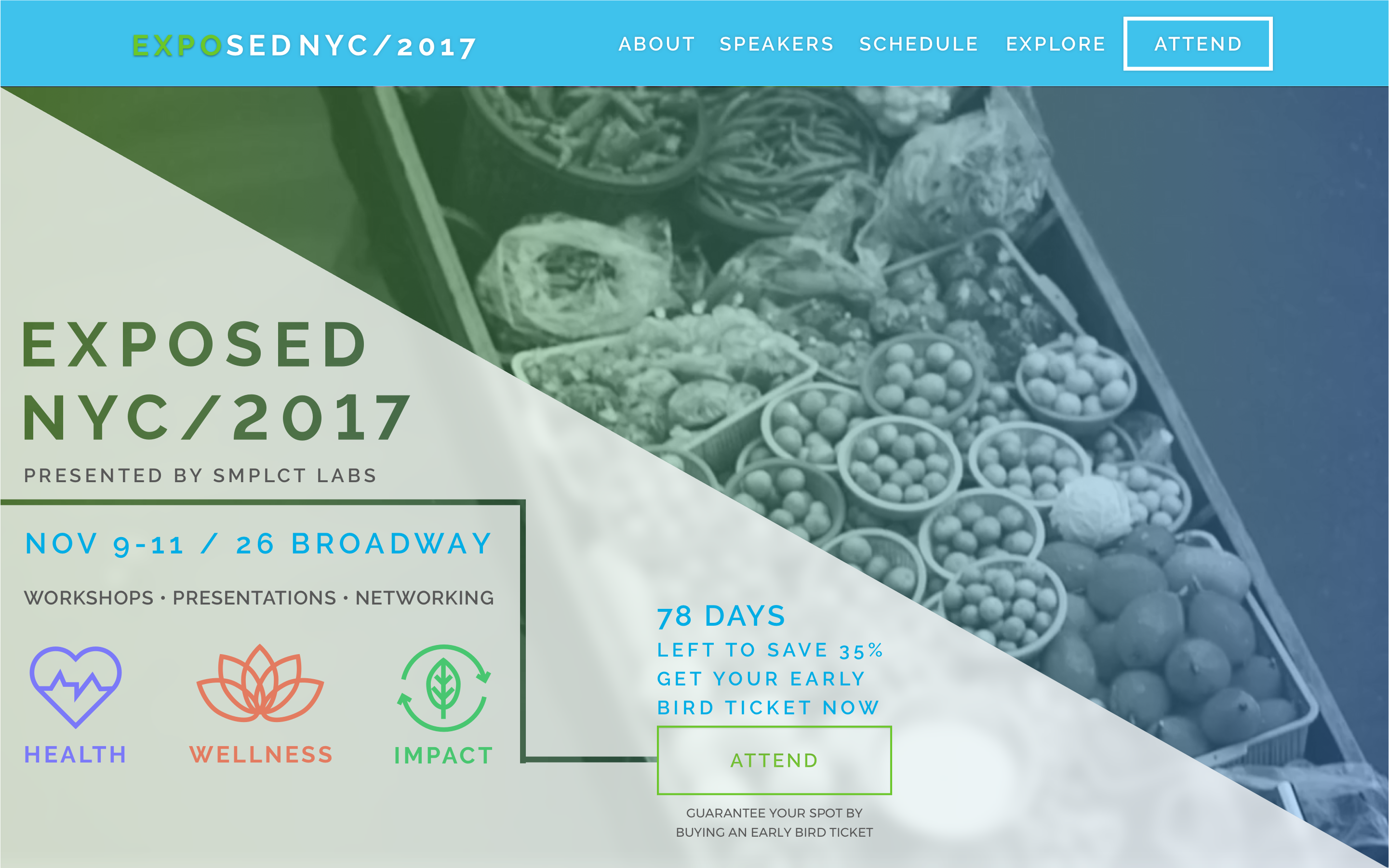 SMPLCT Lab hosts an annual 3 day conference called Exposed; this conference focuses on health, wellness, and social impact.