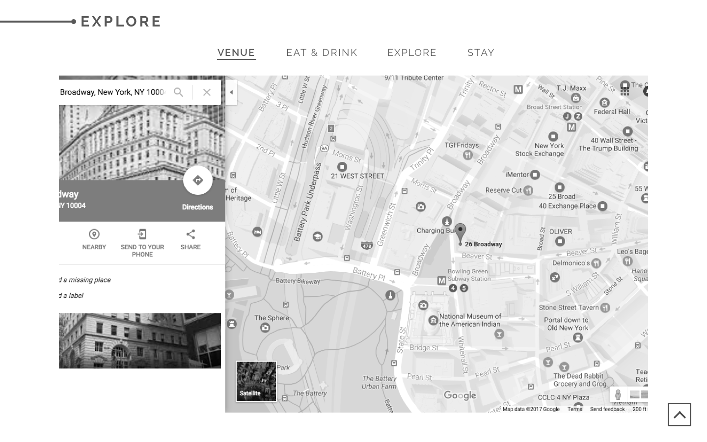 We decided to highlight the locale of the conference, downtown NYC, by creating a separate section.