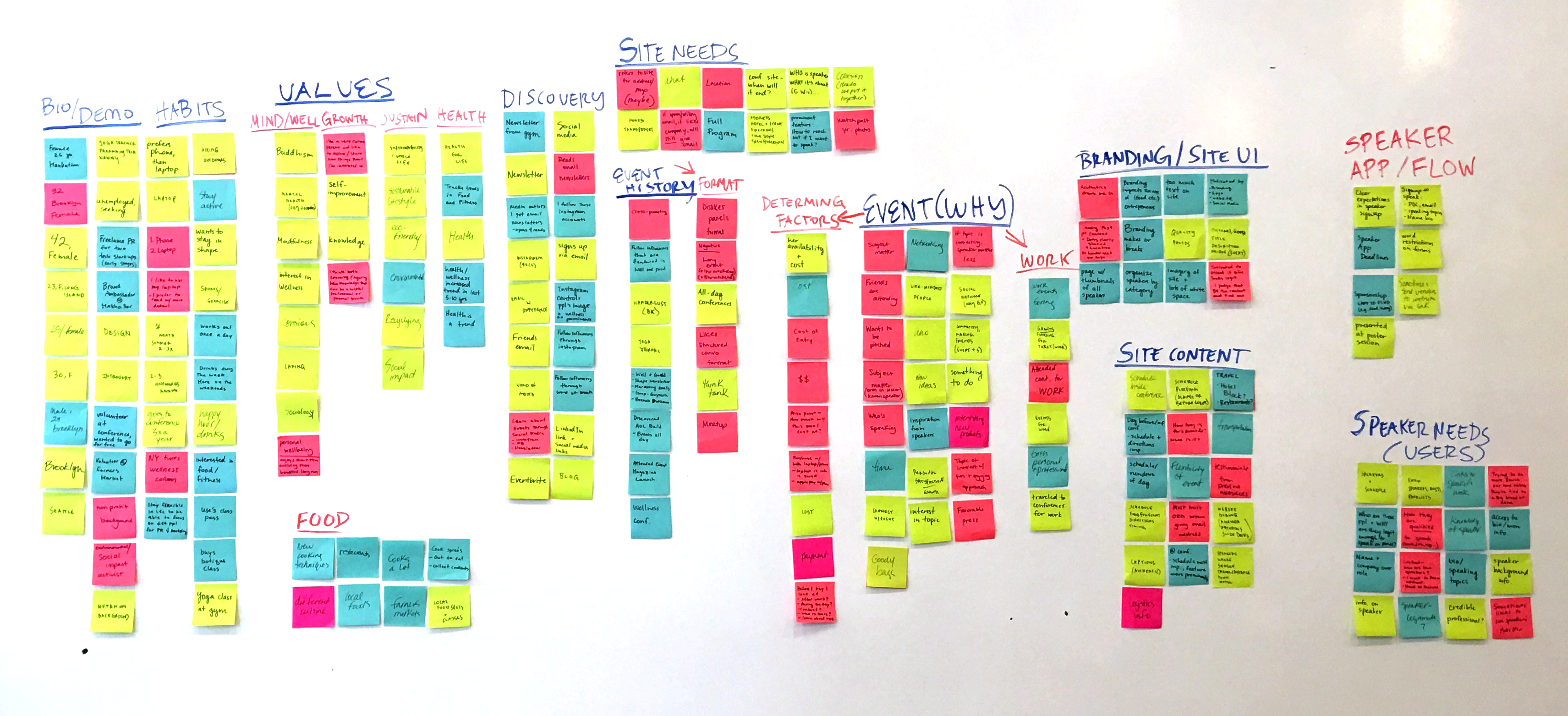 To increase effectiveness of the navigation, we performed a folksonomy test to choose the section names. Similar to card sorting, users were given term cards to rank in order of what they would expect to see on a health and wellness event site.